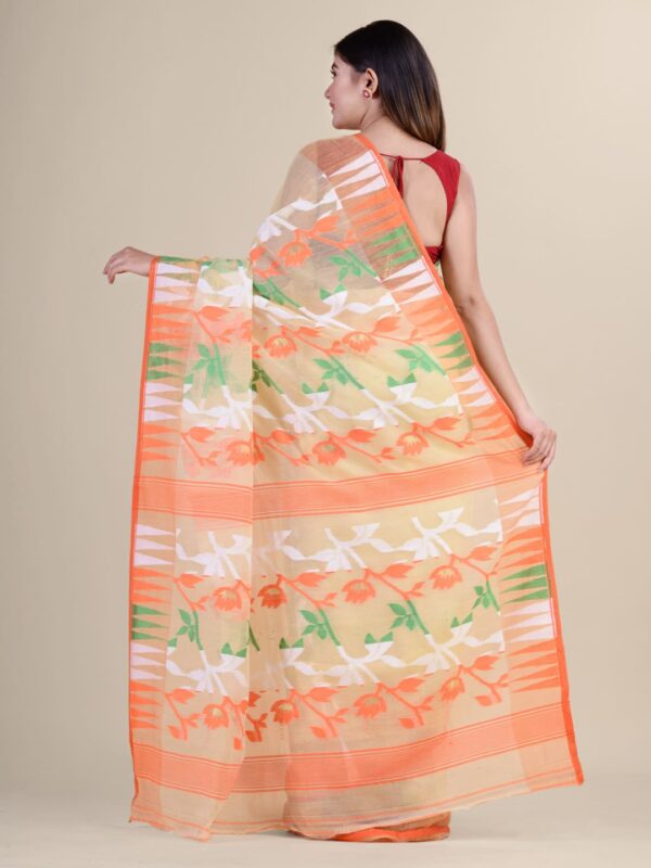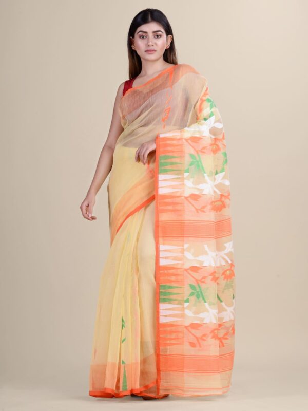 Laa Calcutta’s Jamdani Sarees is made of soft cotton and feature intricate dhakai jamdani designs. Our Jamdani Silk Sarees are also popular for their beautiful designs and quality craftsmanship. Jamdani saree is all about floral, paisley, ethnic motifs design on it. The vivid color and the comfortable fabric makes it more worthy.
