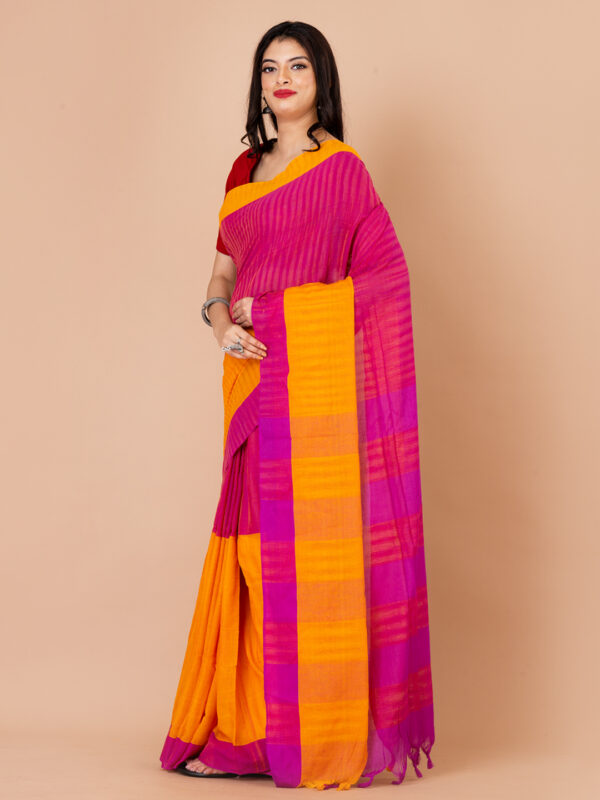 Be the first to review “Yellow & Purple Cotton handloom saree.”