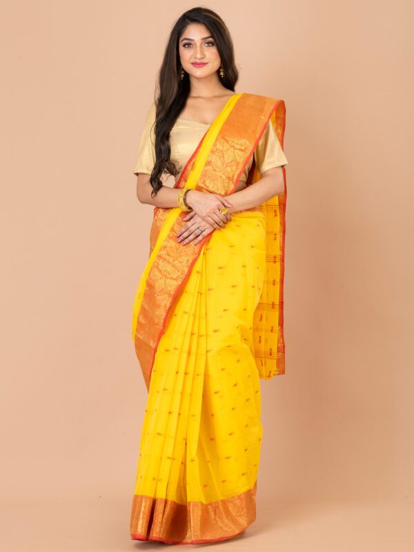 Be the first to review “Yellow & Red Ethnics Motifs Tant Saree.”