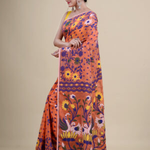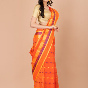 Orange & Multi pure cotton floral design taant saree