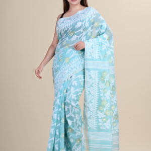 Sky Blue & Blue pure cotton Dhakai Jamdani Saree.